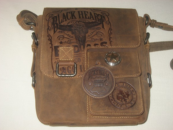 Stilvolle Lederumhängetasche für echte Abenteuer-Western Enthusiasten Die Jack's Inn 54 Lederumhängetasche M "Black Bad Ass" vereint robustes Design mit funktionaler Vielseitigkeit. Die hochwertige Verarbeitung und die einzigartige "Black Heart"-Prägung machen diese Tasche zu einem echten Hingucker auf Ihren Abenteuern. Funktionalität trifft auf Design Erleben Sie die optimale Kombination aus Stil und Zweckmäßigkeit. Das geschliffene Vollrindleder bietet eine angenehme Haptik und entwickelt im Gebrauch eine individuelle Optik. Der robuste Schultergurt sorgt für bequemen Tragekomfort, egal wohin Ihre Reise Sie führt. Hier noch die Mase: Höhe ca. 29 cm, breite ca. 25 cm, tiefe mit Ausentasche ca. 9 cm.Das ist ein Privatverkauf ohne Garantie und Rücknahme.PS: Der Neupreiß beträgt 199,00 €.