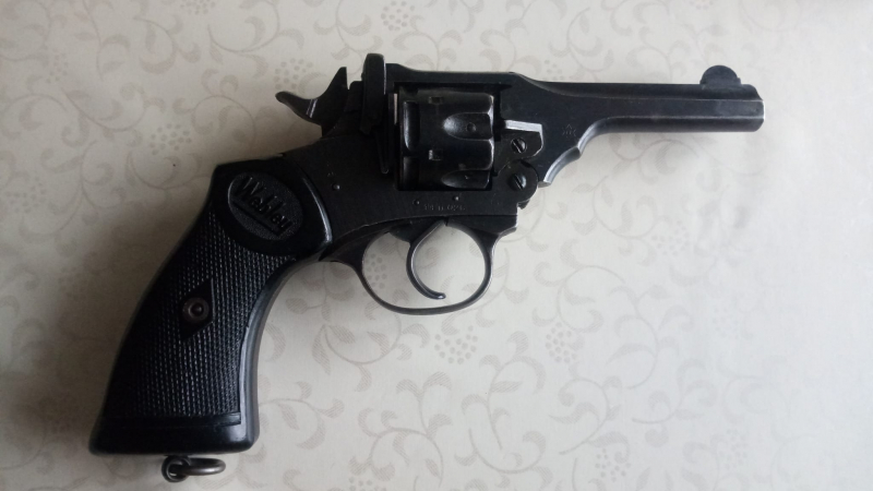 Biete einen Webley & Scott Mark IV Revolver, britische Waffe aus dem Zweiten Weltkrieg, als Umbau zur freien Waffe im Kaliber 9mmR Knall. Ich habe den Revolver Anfang der 1990er im Waffenhandel gekauft und nie geschossen. Baujahr lt. Waffennummer 1944, War Finish - Variante in grober Brünierung. Es ist das Modell ohne Gewinde für einen Abschussbecher, daher ist auch an der Mündung nicht zu erkennen, dass es eine Schreckschusswaffe ist. Einwandfreie Funktion.
