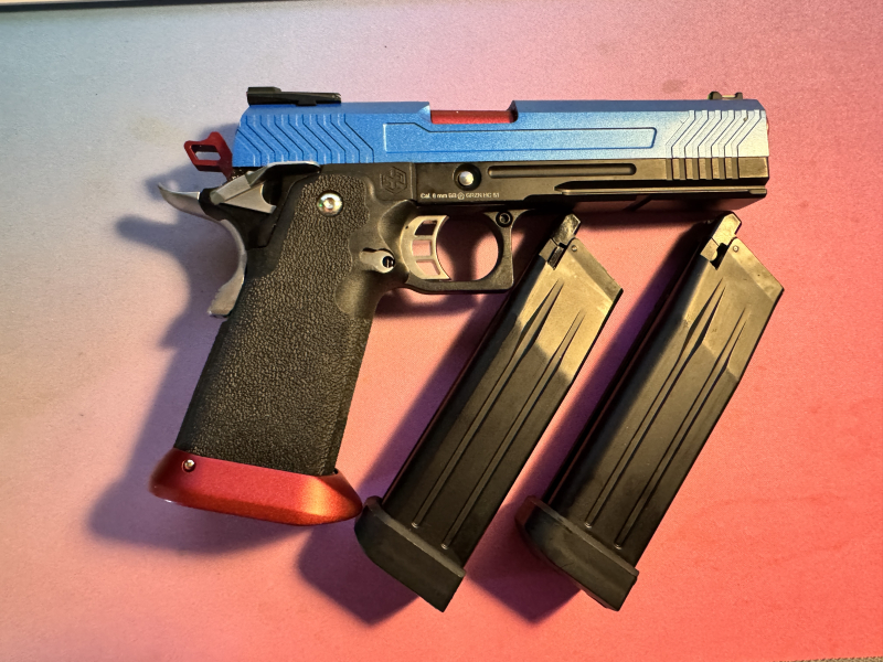 Diese AW Custom HX1105 HiCapa GBB überzeugt durch präzise Verarbeitung, auffälliges Design und zuverlässige Performance. Das Modell in Blue/Red ist ein echter Blickfang – ideal für Spieler, die Wert auf Optik und Funktion legen.