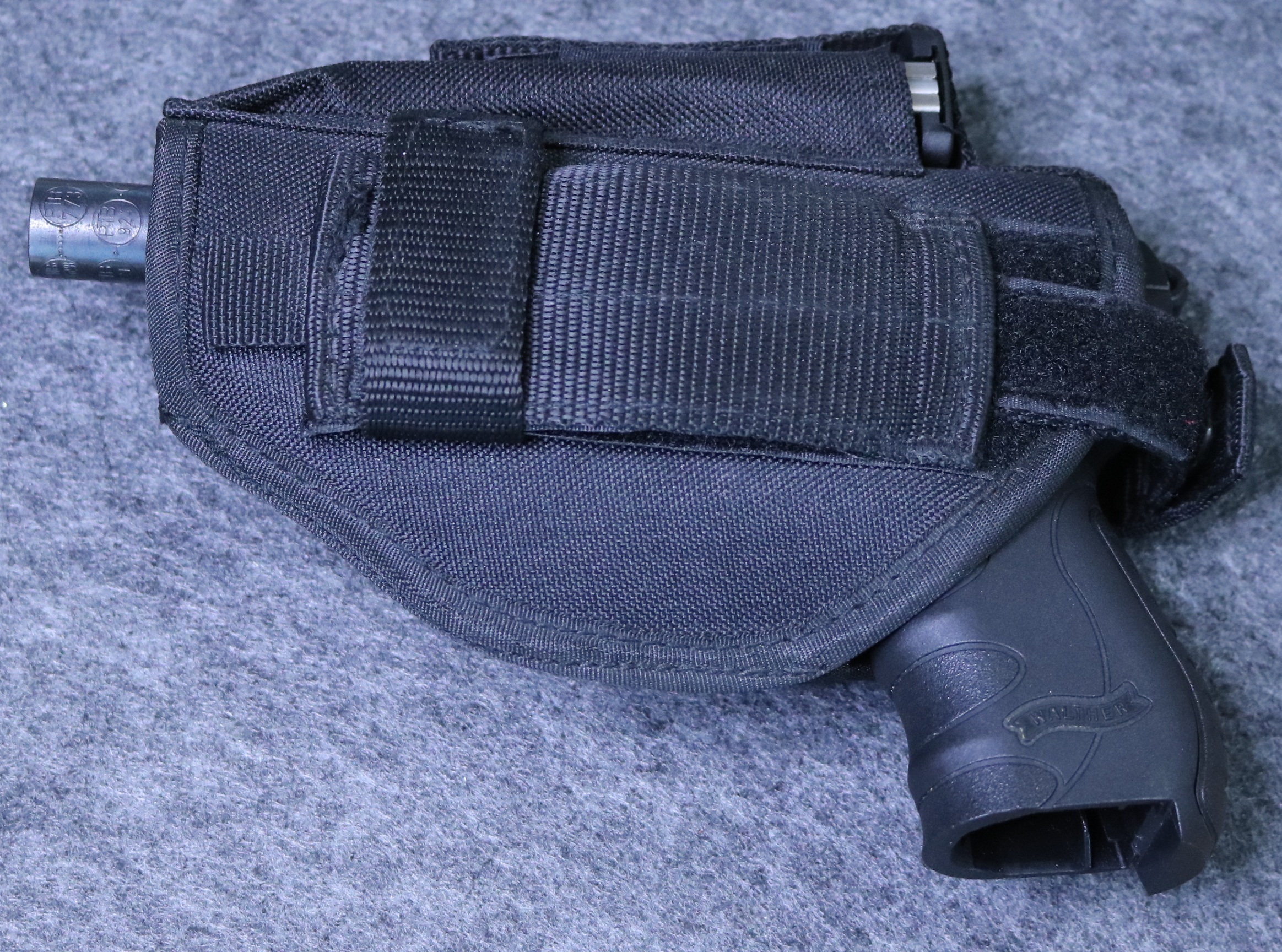Die Waffe wird mit einem passenden Textilholster von UTG geliefert, jedoch ohne den Koffer und die Reinigungsbürste. Der Abschussbecher für Signalmunition liegt bei.