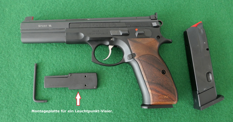 Verkauft wird eine von Waffen-Oschatz ( https://www.waffen-oschatz.de/cz-75-sport-iii/ )getunte CZ-Sport-3 im Kaliber .22 lfb. Diese Waffe ist neuwertig, sie hat etwa 200 Schuß geleistet und ist extrem gut gepflegt. Die Standardausstattung der Sport III umfasst:6 Zoll Schlitten mit Matchlauf, Korn mit Quereinschub (hinterschnitten),Sportvisierung, überarbeiteten Abzug, Schlösschenfixierung (durch Schraube),Triggerstop, Nill-Griffschalen