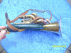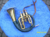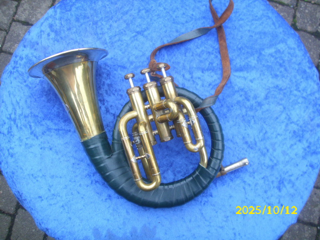 Verkaufe hier aus einem Nachlass ein schönes Fürst Pless Horn, Jagdhorn des Herstellers Kühnl & Hoyer, vermutlich das Modell 1305a, Nr. 20679, leider ohne Mundstück, in gebrauchtem Zustand, das heißt, dass Gebrauchsspuren vorhanden sind, wie abgebildet. Die Ventile sind absulut leichtgängig, soweit ich das als Laie beurteilen kann. Den weiteren Zustand entnehmen Sie bitte den Bildern, die auch Bestandteil der Artikelbeschreibung sind.