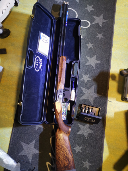 Sonstiges: goldener selektiver Einabzug (verstellbar), Ejektor, LPA-Leuchtkorn, Stahlschrotbeschuss, ventilierte Gummi-Schaftkappe, Laufumschaltung, Waffenkoffer mit Zahlenschloss