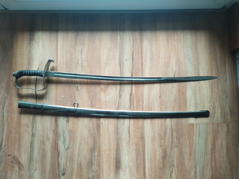 Zum Verkauf kommt der abgebildete Säbel in gutem Zustand.Länge mit Scheide 97cm, ohne Scheide 90cm, Klinge 77cm.