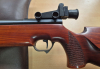 Verkaufe aus meiner Sammlung ein altes Haenel MLG 312 (aus ehemaliger DDR Produktion) in sehr schönem Originalzustand. Der Seitenspanner ist ein Einzellader mit gezogenem Lauf im Kaliber 4,5 mm für Diabolo. Machtkornaufnahme für Wechselkorne und Diopter. Einstellbarer Abzug, verstellbare Schaftkappe mit Schnellspannverschluss. Das Gewehr hat guten Druck und funktioniert einwandfrei. Zustand siehe Bilder.