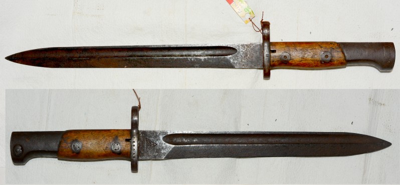 Tschechisches Bajonett Modell 1924 mit später auf 27cm gekürzter Klinge, Metall mit Rostpatina aber noch gut, es fehlt die Scheide