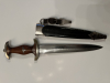 Seltener Ehrendolch mit ausgeschliffener Röhm Widmung der SA NSKK Motorbootstandarte. E. P. & S für Ernst Pack, Solingen Parierstange Nm Stempelung, Scheiden Beschläge Eisen vernickelt. Schwarze Lackierung mit Abplatzungen und sicher alt nachlackiert.