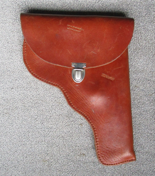 Biete hier diese originale Pistolentasche für eine Colt Kongsberg M1914 an, braune Nachkriegsfertigung mit Metallschließe, sehr guter, fast neuwertiger Zustand, Maße der Tasche: Höhe circa 26cm, Breite circa 18cm, das Leder ist sehr schön weich, alle Nähte sind fest und in Ordnung, Fragen hierzu gerne per email, allen Bietern viel Erfolg !