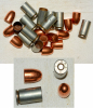 11 alte Hülsen cal.45, Ausführung wie 2. Weltkrieg, geprimed, dazu neue passende Kupfermantelgeschosse