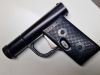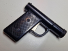 Diese sog. Notwehrpistole stammt aus einem Nachlass und wurde meines Wissens nur von ca. 1948 bis ca. 1955 gebaut. Trotz des Alters befindet sich die Pistole in einem sehr guten Zustand, ohne äußerliche Beschädigungen. Die innenliegende Feder ist recht schwergängig; die Pistole funktioniert aber einwandfrei. Maße: 115 x 100 x 20 Gewicht: ca. 150 g..Beschriftung: “D.B.P.a.” und “A.P.a.” (auf beiden Griffschalen)