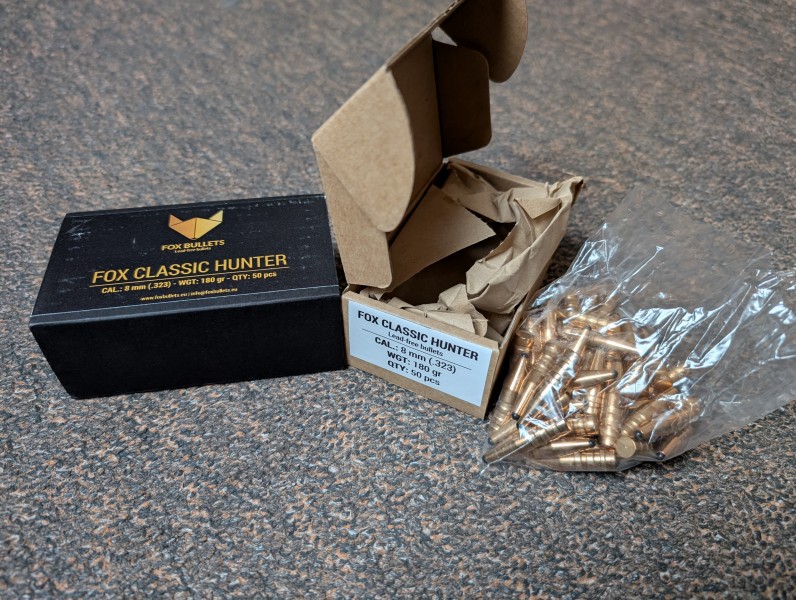 Angeboten wird eine nicht angebrochene Packung Fox Classic Hunter mit 50 Geschossen für 8mm (.323) mit 180gr.