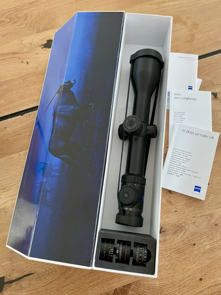 Sehr guter Zustand. Minimalste Spuren von der Demontage der Ringe, siehe Fotos. Keine Schäden am Glas, Rohr oder ASV. Box, Garantiekarten, Anleitung und alle ASV-Ringe vorhanden. Besichtigung in Bernried am Starnberger See oder München.