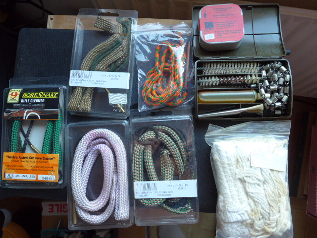 Verkaufe aus Nachlass diverse Laufreinigungsmittel. Bore -Snake 223, 6mm, 6,5, 7,62, 8mm sowie ca: 20 VFG Filze 8mm , Reinigungs-Set ( siehe Foto ) inklusive Versand.
