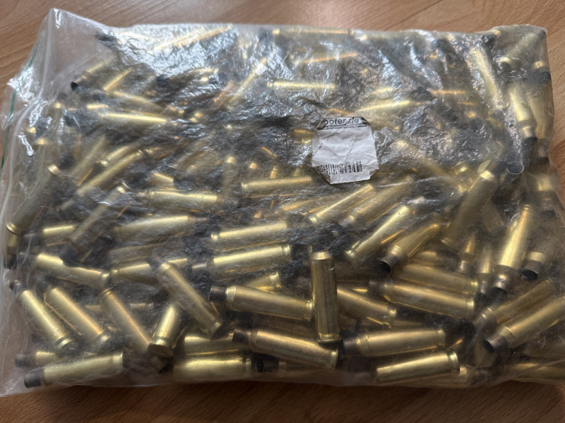 Die Hülsen stammen aus Fabrikmunition und sind einmal abgefeuert. Nicht gereinigt oder entzündert.