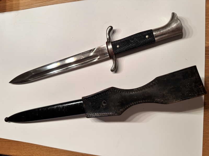 Habe ein tolles Eickhorn Bajonet abzugeben. Dieses wurde vor einigen Jahren in der Familie eingemauert in einem Wandfach gefunden. Der Zustand ist meiner Meinung nach sehr gut. Die Scheide hat natürlich leichte Kratzer bzw. Rostspuren. Griff ist nicht magnetisch.