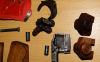 Verschiedene Teile für Luger Pistole 08, (Verriegelung, Deckblatte, Bolzen, Feder, teils rostnarbig, Holzboden für Magazin 08 (nachgemacht)