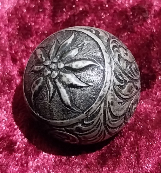 Ich biete handgraviert Verschlusskugel - Kammergriffkugel_Plastisch tiefe Alpengebirgsblume Gravur mit Lilienblatt und Arabeske - Dural - für alles Waffen zbs.Blaser/Merkel/Sauer