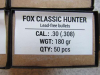 Verkauft werden wegen Kaliberwechsel 5 Schachteln FOX Geschosse, Kaliber .308, 180 gr, für je Schachtel 49,90 Euro. Bezahlung Vorauskasse oder paypal privat ohne Gebühren für mich. Versand 6,50 Euro in D ohne Inseln, egal, wie viele Schachteln Sie erwerben.