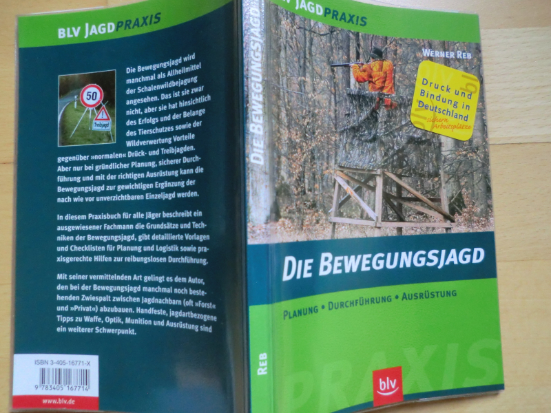 DIE BEWEGUNGSJAGD - von Werner Reb, BLV Verlagsgesellschaft München 2004, 128 Seiten mit sehr vielen Abbildungen - Inhalt u.a.: Bewegungsjagd heute / Vorbereitung, Terminlisten / Karten und Quadranten / Die Ansteller / Der Standzettel / Schützenstände / Schützen, Treiber, Treiberschützen / Hundeeinsatz / Nachsuchen planen und vermeiden / Sicherheit / Transport und Wegesperrung / Streckenplatz, Öffenlichkeitsarbeit / Wildverwertung / Waffen und Munition / Optik und Visierung / Übungsschießen / Ausrüstung / und anderes mehr - Guter bis sehr guter Zustand