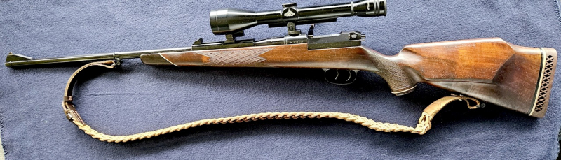 feines Abzugssystem mit einstellbarem Deutschen Stecher, sauberer Schlossgang, einwandfreie Funktion, Schaft mit Bayrischer Backe, Pistolengriff mit Kappe, Fischhaut und ventilierte Schaftkappe,