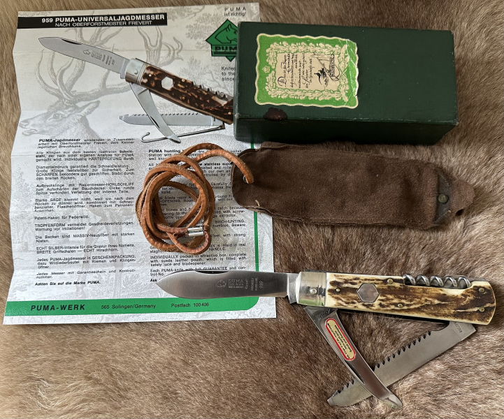 Puma Taschenmesser 959 aus ( 96083) 1968 erste Ausführung ( 3 Liner)unbenutzt mit Beschreibung Lederbeutel mit Klingenöffner ( Lederbeutel mit Alterspuren) und erste Verpackung. --Zustand siehe Fotos, wer mehr Fotos benötigt kann mich gern anschreiben unter 0151 20767333, ich werde dann per WhatsApp weitere Fotos senden. !!!NICHT per Mail !!! --- Tausch bevorzugt !!! ! gegen Fernglas Zeiss Dialyt 7x42 B/GA T*P* mit Verpackung!!!! Da es ein Privatverkauf ist kann ich keine MWST ausweisen, keine Rechnung ausstellen und keine Garantie geben. Die Ware ist vom Umtausch ausgeschlossen!!! Mit dem Kauf des angebotenen Artikels erklären Sie sich ausdrücklich damit einverstanden, auf die Ihnen nach neuem EU-Recht gesetzlich zustehende Garantie bei Gebrauchtwaren zu verzichten und die sogenannte Sachmängelhaftung wird wirksam ausgeschlossen!!!
