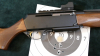 Browning BAR II, Kal. .308Win., altersgemäß sehr guter Zustand (Vorderschaft ohne Riss, ein paar Kratzerchen und Druckstellen, Metallteile ohne Flugrostspuren, auf der linken Verschlußkastenseite sind ein paar stumpfe Kratzer zu sehen, auf der rechten Hinterschaftseite ist ein "Eichenlaub" mit den Initialen "RG" montiert), auf einer Weaverschiene (EAW) ist ein Dochtersight II montiert. Auf die Schiene kann auch problemlos ein ZF montiert werden. Schußleistung siehe Bild: 5 Schuß mit 11,0g Geco TM auf 50m, Lauf innen blank, Lauflänge 53cm , Schaftlänge 34,5cm, Gesamtlänge 105cm. 2-Schuß-Magazin (wechselbar), abnehmbare Riemenbügel.