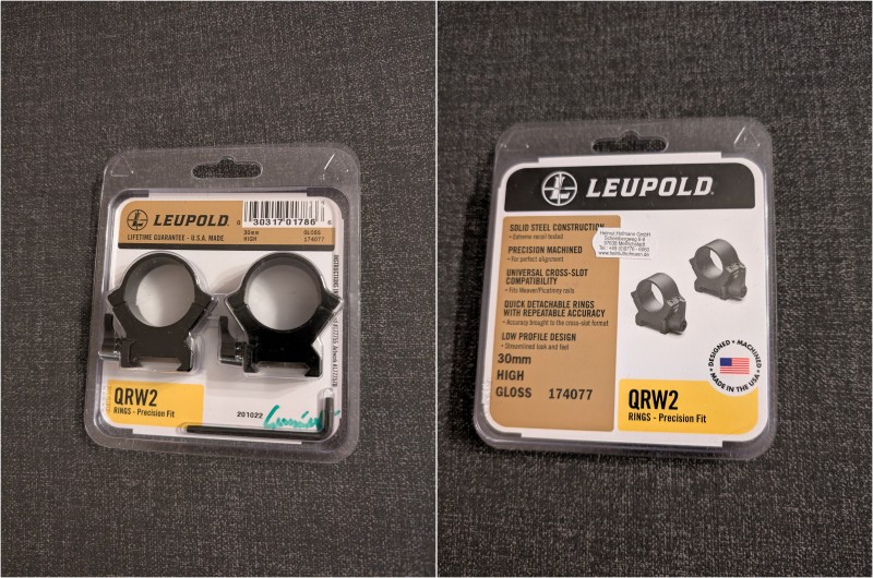 Zum Verkauf steht ein Satz Leupold QRW2 30mm Picatinny Ring-Montage (High ~12mm). Die Ringe waren nie im Einsatz und werden wegen Überbestand angeboten. Sie wurden bei https://www.jagdabsehen.de erworben und sind mit deren High-End Gummi-Innenbeschichtung versehen.