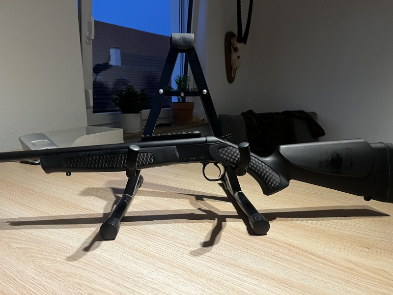 Sie wurde im Juli 2024 gekauft. Die Lauflänge beträgt 16,5″ (42cm). Züge und Felder sind blank und scharf. Die Picatinny Schiene wurde beim Händler flächig verklebt.