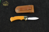 Die karamelfarbenen Griffschalen sind aus Westinghouse-Micarta und perfekt mit den Messingnieten angepasst.