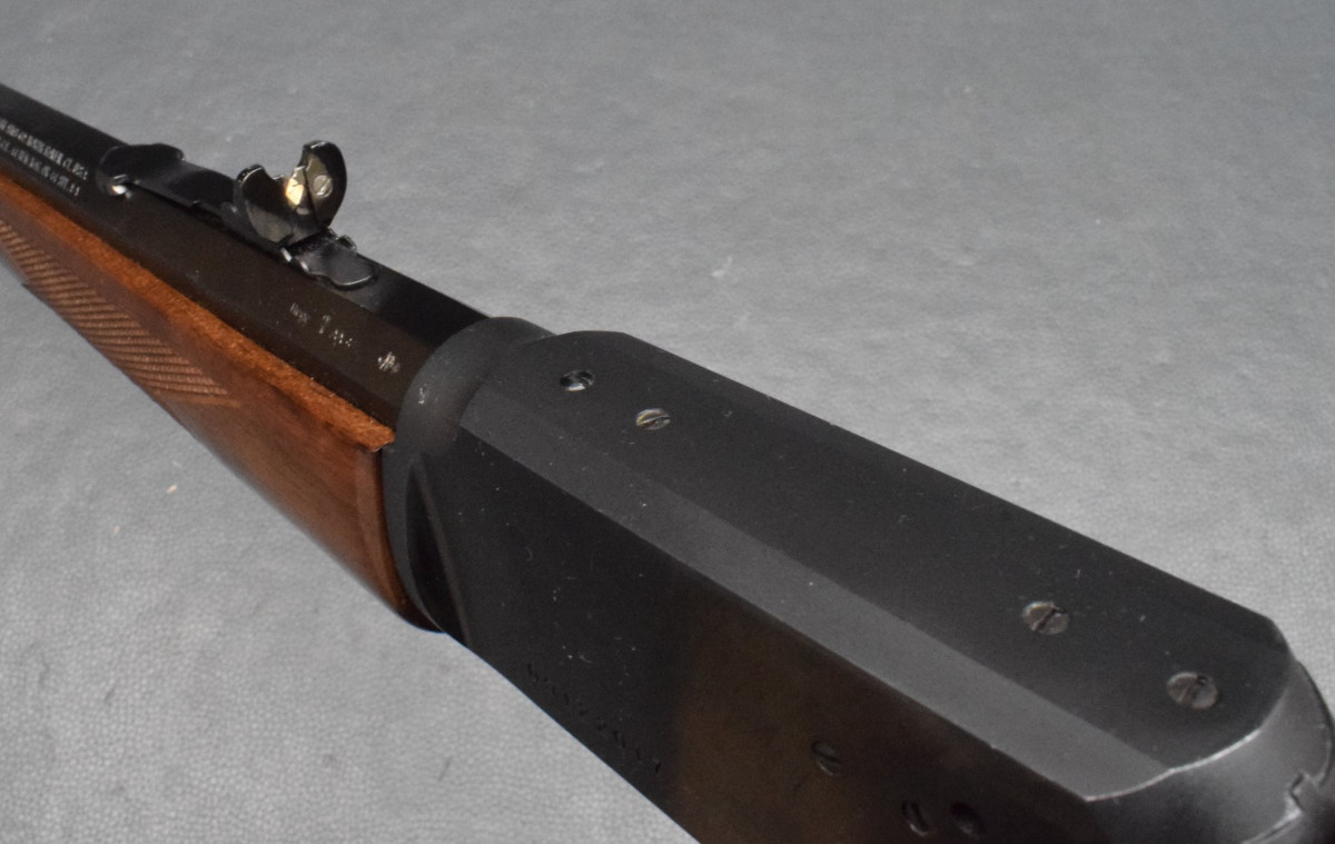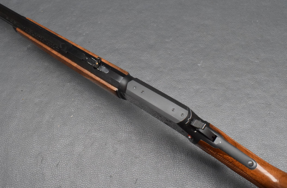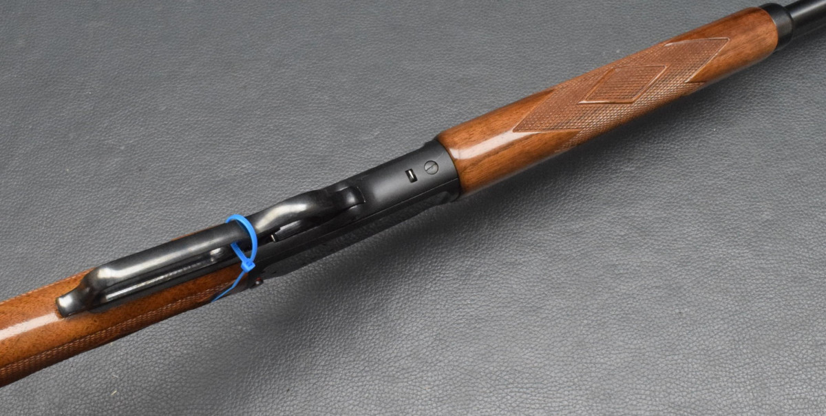 außenliegender Hahn, 10-Schuss Magazinrohr unter dem Lauf. Schaft und Vorderschaft aus Walnussholz, Fischhaut für einen ausgezeichneten Griff bei allen Wetterbedingungen.