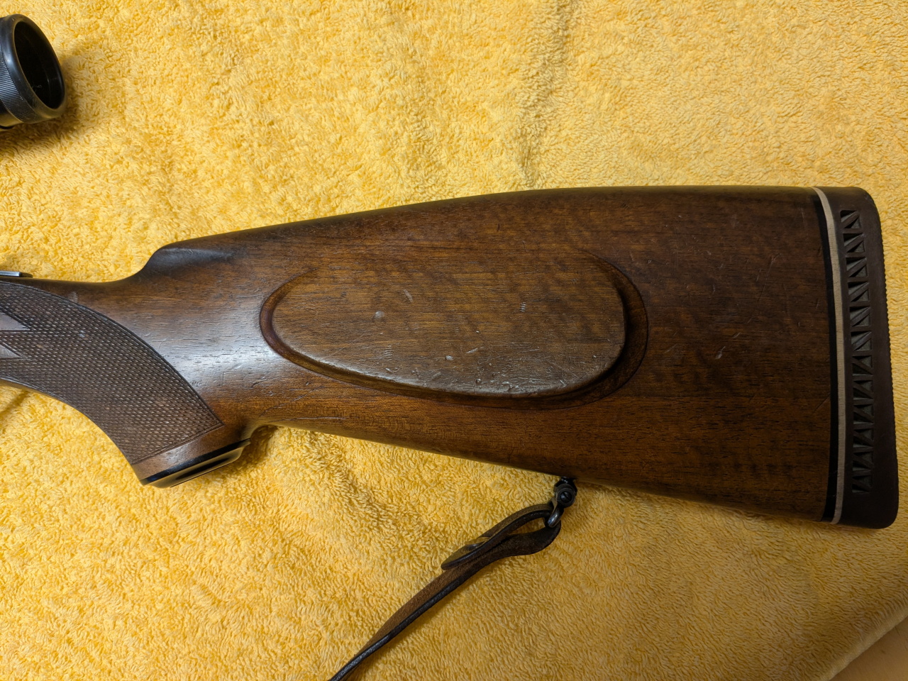 Die Waffe zeigt Gebrauchsspuren am Schaft, wie sie nun mal bei der Jagdausübung passieren.