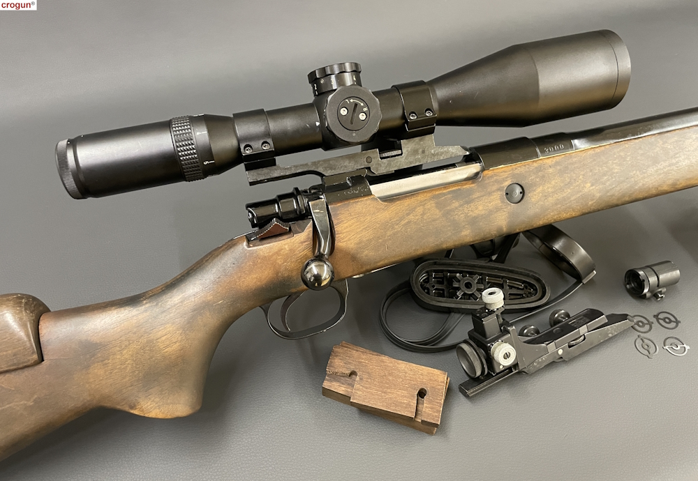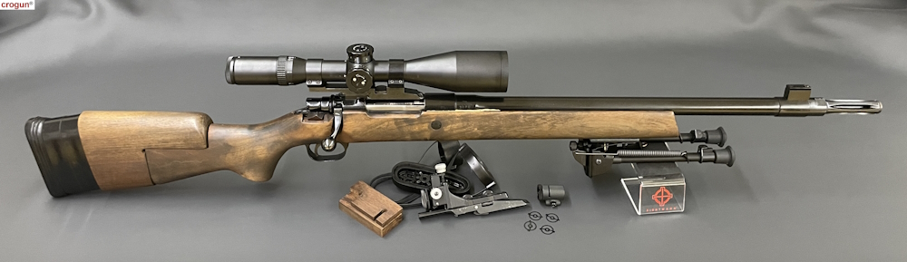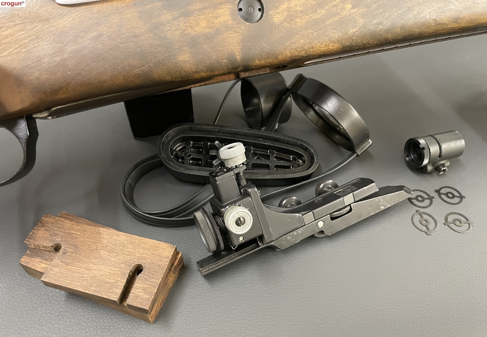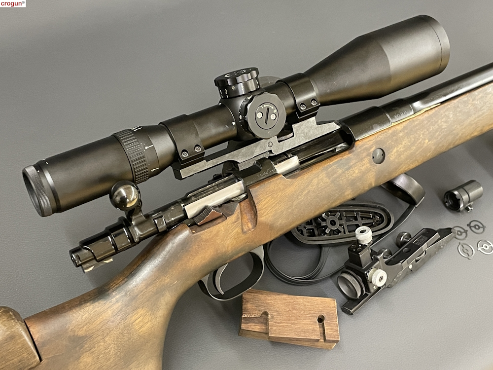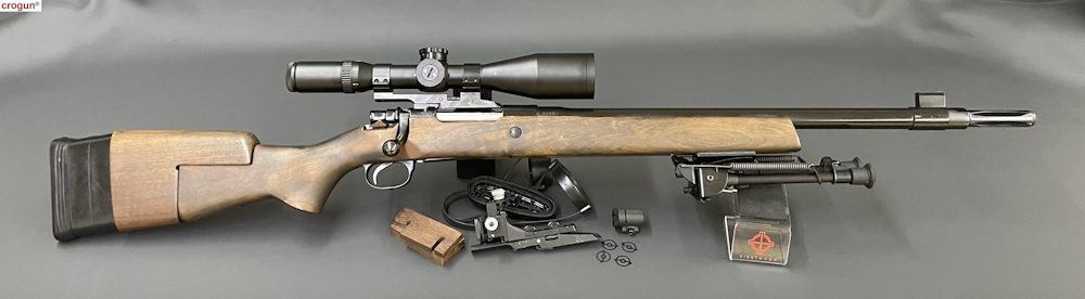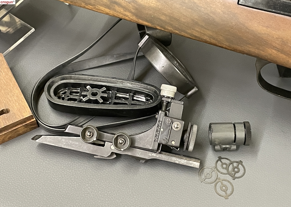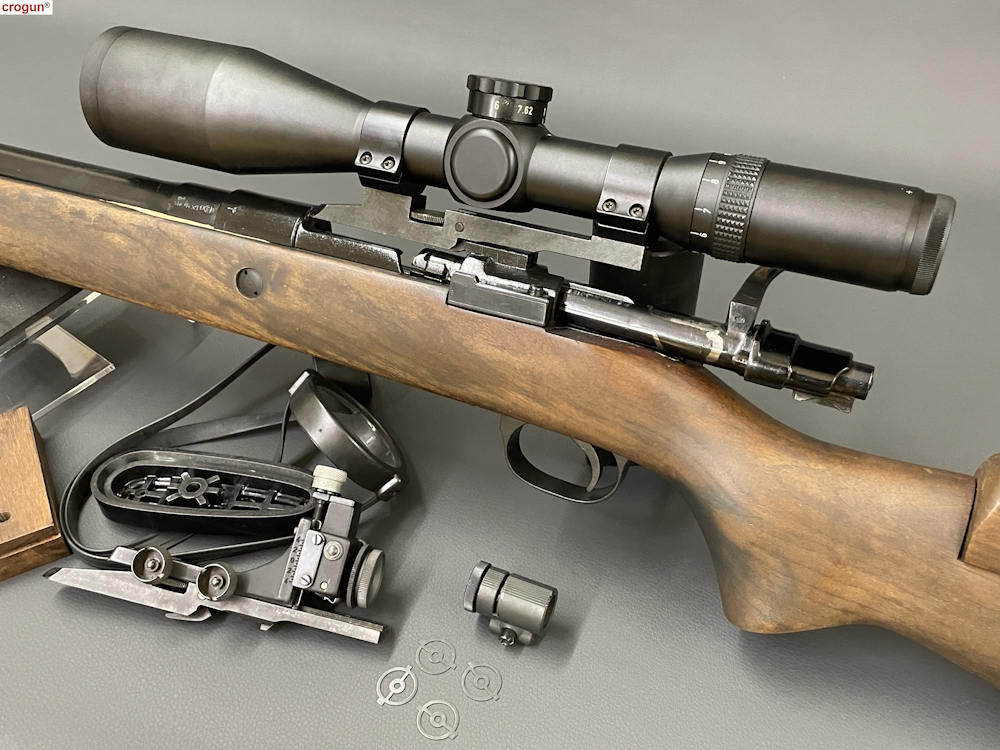 Lieferumfang und Zustand wie abgebildet, mit zus. Original Anschütz-Diopter und Montage, Schaftteilen und Zweibein! Bilder zum Teil mit Lichtreflektionen!