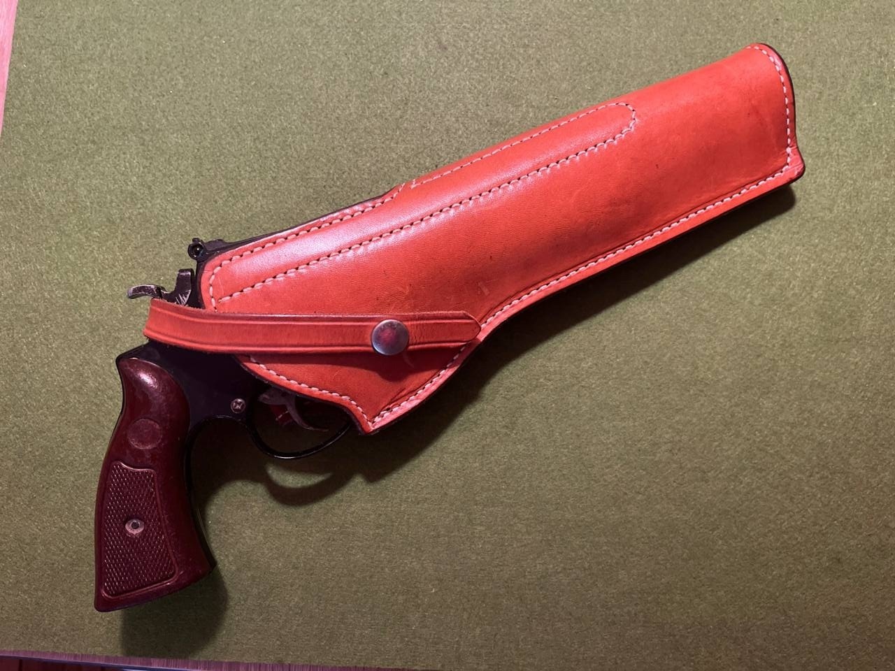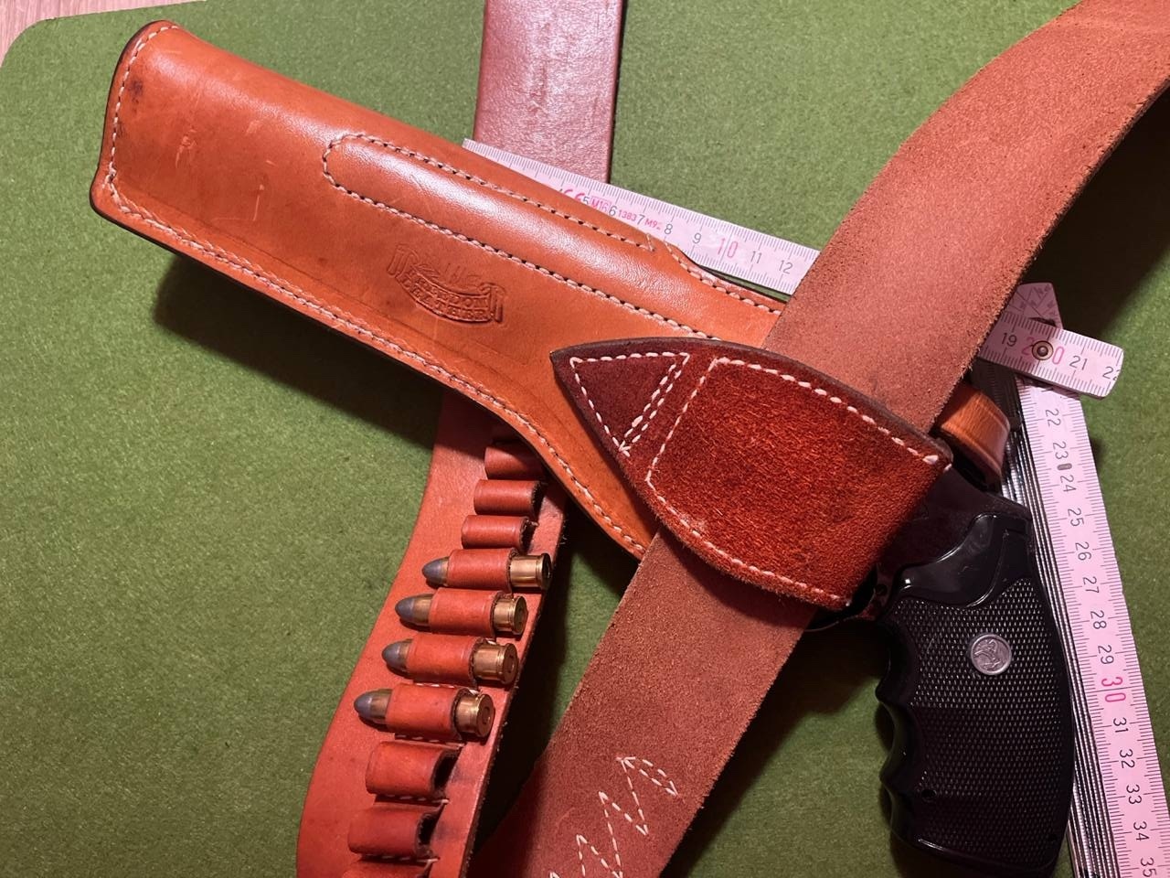 Die Anpassungsmöglichkeiten sind aufgrund der Lederfestigkeit etwas aufwendig, und obwohl das Holster offensichtlich für DA- Revolver gedacht zu sein scheint, könnte es nach Bedarf auch für moderne SA angepasst werden, hier aus dem Netz ein paar mögliche Kandidaten, Magnum Research BFR 500