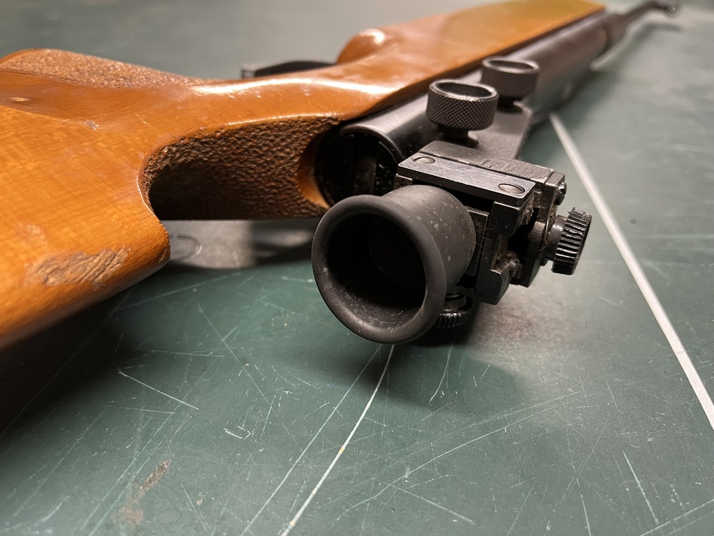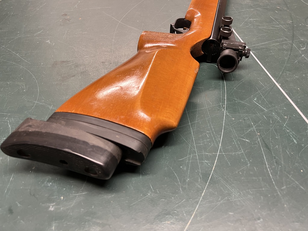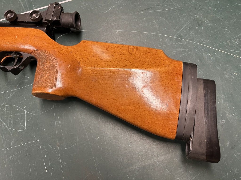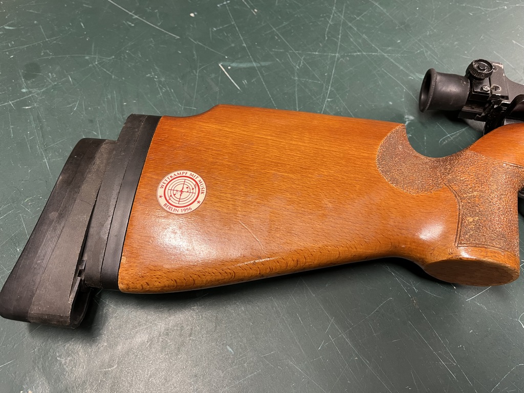 Schönes, präzises Matchluftgewehr aus Suhl mit kurzer Prismenschiene.