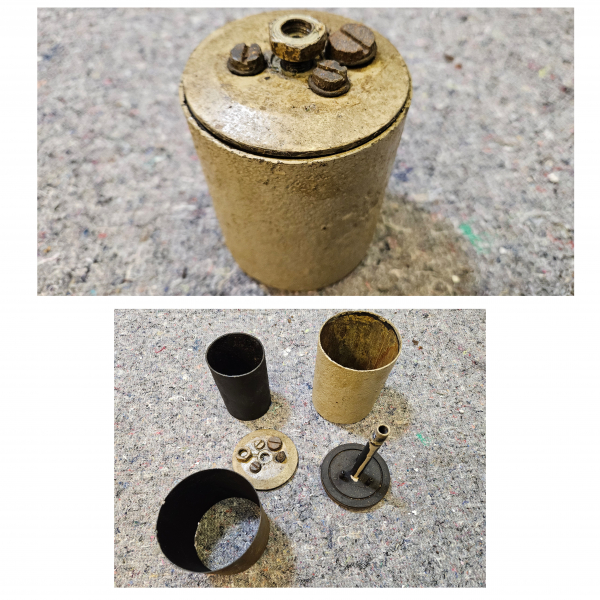 Schöne deutsche Springmine 35..zerlegbar leider hat der Vorbesitzer die Schrapnell verbummelt..alles deko und inert