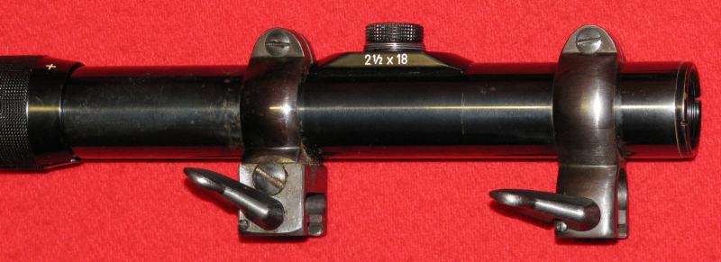 Zum Verkauf kommt ein F / Zielfernrohr / Stahlglas, ein Schmidt & Bender 2 1/2 x 18 mit dem Absehen 1 und einer Stahlmontage mit Seitenverstellung von AKAH für eine 10mm Schiene