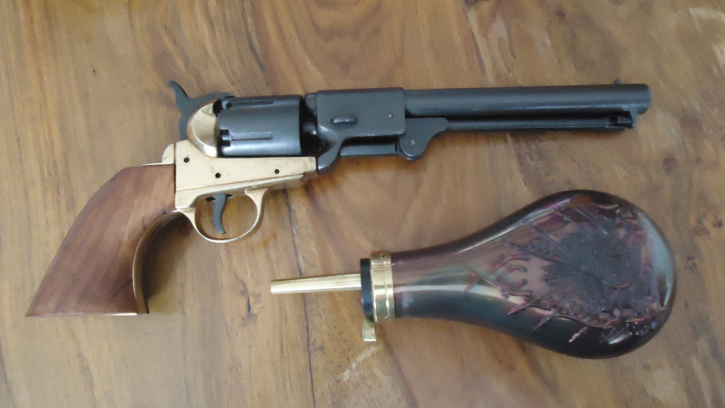 Vorderlader-Konföderiertenrevolver Griswold & Gunnison 1862 inkl. Pulverflasche