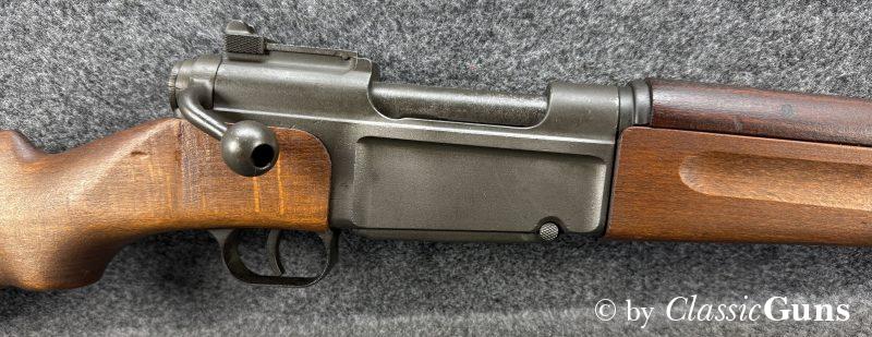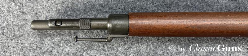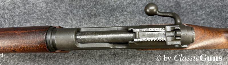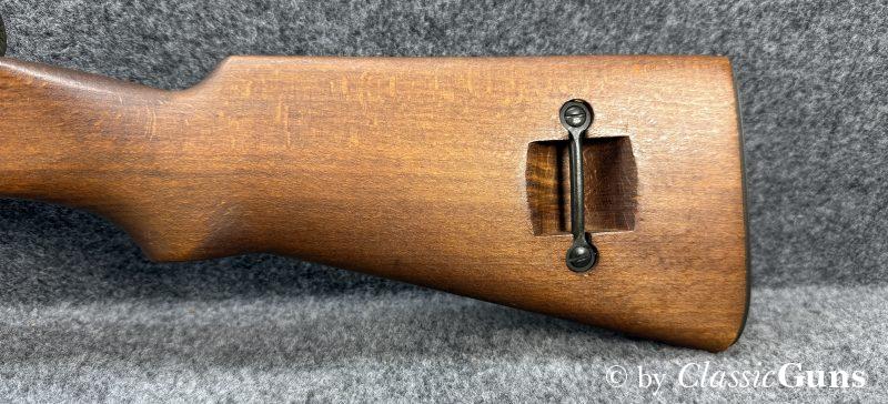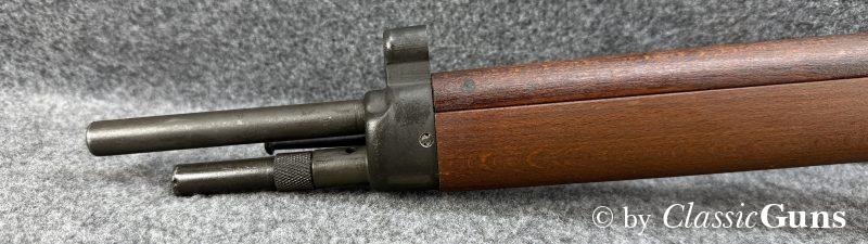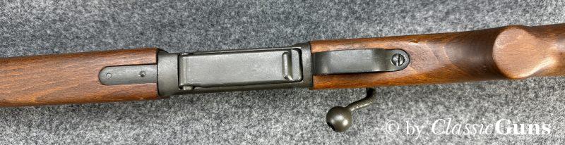 Nach alter deutscher Waffenrechtsbestimmung zum Einzellader konvertierte Ordonnanzwaffe, in unserer Büchsenmacherwerkstatt sorgfältig gereinigt und geprüft.