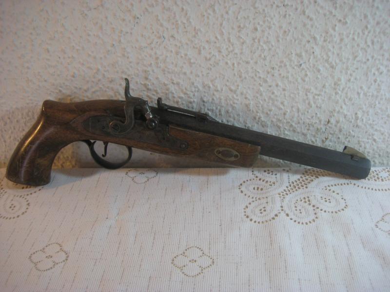 Sie bieten in dieser Auktion auf eine Vorderlader Steinschloss Pistole. Kleinere Rostspuren sind vorhanden. Länge ca. 38 cm Siehe Foto/s! Viel Erfolg beim Bieten! Beachten Sie auch bitte meine anderen Auktionen. Der Versand erfolgt mit einer FSK 18 Prüfung. Da Privatverkauf keine Rücknahme, keine Garantie und kein Umtausch. Dieser Verkauf erfolgt unter Ausschluss jeglicher Gewährleistung.