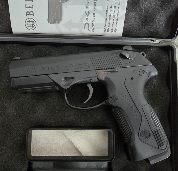 Hallo, biete hier eine Beretta PX4 Storm, CO2. 4,5mm Diabolo, schwarz. Die waffe ist in einem sehr guten zustand, minimale gebrauchspuren. Wurde selten geschossen. Mit dabei ein koffer, anleitung. Waffe hat Blowback und ist aus Metall und Kunstoff. Waffe wurde sehr gepflegt.