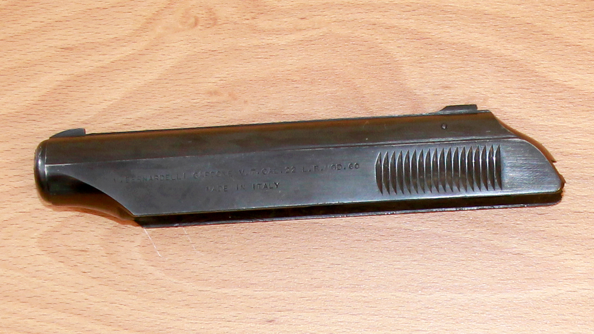 Bernardelli Modell 60, Kal. .22 Long Rifle — halbautomatische, rückstoßbetriebene Kleinkaliberpistole mit ca. 3,5" (≈89 mm) Lauf, herausnehmbaren Magazin und klassischer, kompakter Bauweise. Ideal für Sammler und Liebhaber historischer italienischer Handfeuerwaffen. Durch ihre kompakte Bauweise ist sie seiner Zeit besonders für die verdeckte Trageweise konzipiert worden.