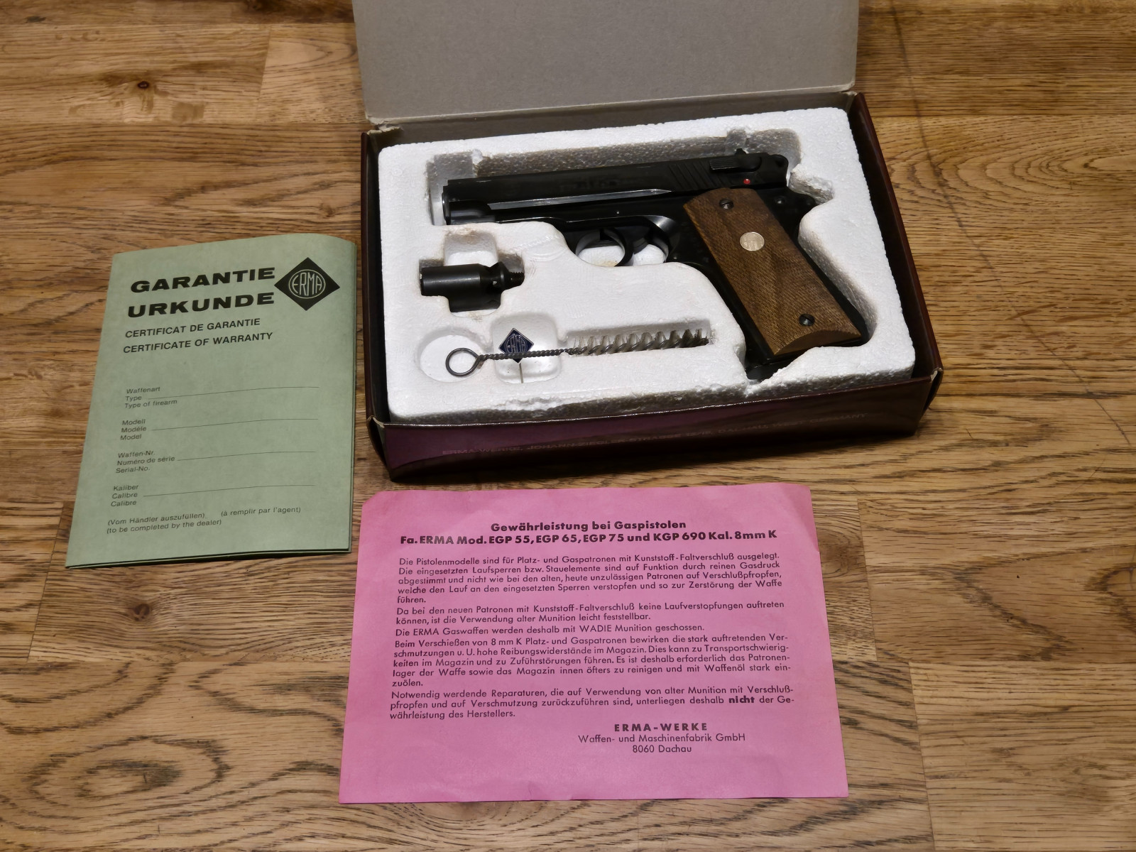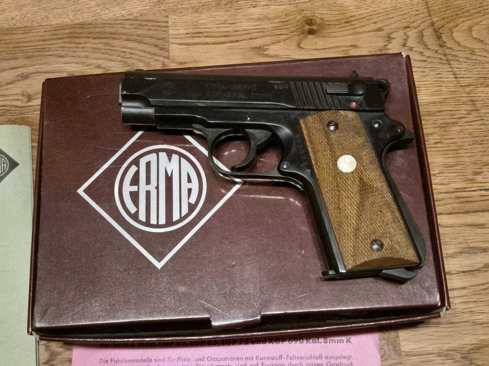 ERMA EGP45 8mm PTB 297 Gas & Schreckschuss Pistole in ovp