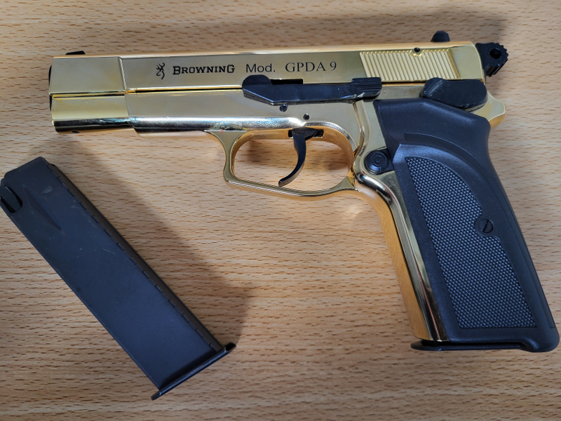 Aus Nachlass wird folgendes verkauft. BROWNING Mod.GPDA9 in Gold. Mit dabei ist ein Pyhrobecher und ein Ersatzmagazin. Die Waffe hat das Beschussjahr BK 2019. Sie wurde nie beschossen und ist in einem super Zustand. Laut neuen EU-Recht keine Garantie und Rücknahme der Wahre.