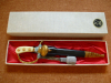 Bügel - Hirschfänger - Original Eickhorn Solingen - Gesamtlänge ca. 42cm - mit Portepee + Trageleder - in Präsentationsbox - aus dem Jahr 1968.**********Vergoldetes Messinggefäß mit verziertem Stichblatt - Auerhahn, kurze Keilklinge (25,5cm) mit beidseitiger jagdlicher Ätzung, elfenbeinfarbene Kunststoffgriffschalen mit aufgelegten Eicheln, schwarze Lederscheide mit vergoldeten Messingbeschlägen.***********Zustand: gebraucht - gut bis sehr gut. Die Präsentationsbox hat kleine Beschädigungen.***********Der Hirschfänger war ein Geschenk zum bestandenen Examen (Forst).*********Wer noch ein Bild-Paket mit 48 Bildern des Hirschfängers haben möchte, melde sich bitte.***********Alternachweis erforderlich ! Entfällt für zertifizierte eGun-Mitglieder (ID-Kennung)*********Privatverkauf ! Keine Garantie ! Keine Gewährleistung ! Keine Rücknahme !********Kein Verkauf ins Ausland ! No sale abroad !********Kein Versand ins Ausland ! No international shipping !**********Versand erfolgt als DHL-Paket für 15,- EUR.
