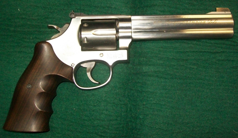 Aus Nachlass Revolver S&W cal .357 Mag mod.686 Target Champion DL mit Nill Griffschalen links auf dem Lauf kleine stumpfe Stelle Griffunterseite Schrammen am Holz