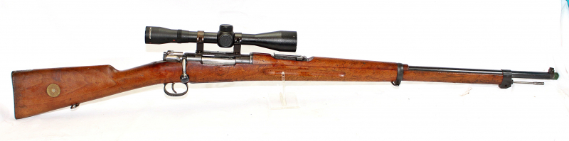 Aus besten Materialien gefertigter Repetierer. Nummerngleich bis auf die Schaftringe. 75cm langer, leicht matter Lauf mit Mündungsgewinde. Mit unbekannten Zielfernrohr auf berschraubter Mittelmontage. Das Kastenmagazin fasst 5 Patronen. Sehr guter Nussbaumschaft mit Plakette.