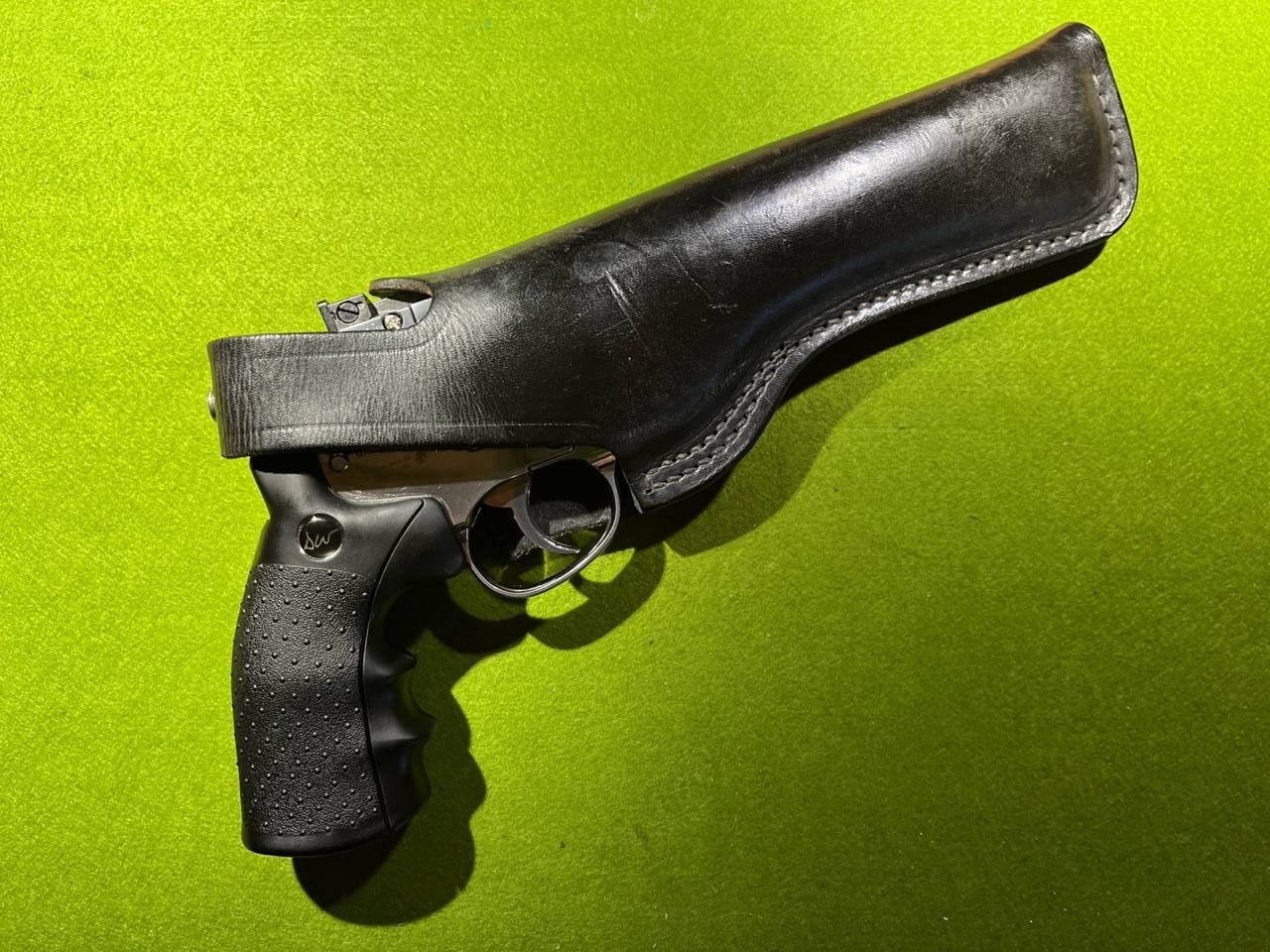 das Holster kann für scharfe, Modelle und Nachbauten von 6- schüssige Revolver mittlere/größere Klasse mit 5,0 bis 6,0 Zoll Lauf im 357/44Mag Kaliber wie z.B. Colt Python