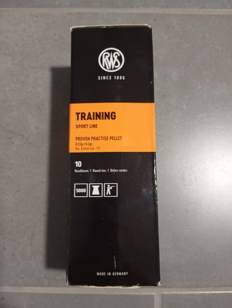 ich verkaufe eine Stange RWS Diabolos Training, Kaliber 4,50 mm, Gewicht 0,53 g , 10 Dosen = 5000 Schuß.