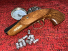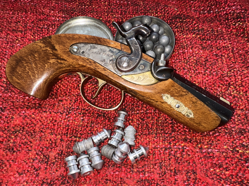 Aus VL-Sammlung die Gelegenheit!Kleiner,führiger Deringer,sehr beliebt damals wegen der verdeckten Tragezeiten von nur 20 cm und vor allem mächtigem .45-er Caliber!Richtige Handkanone,Tascheblitz...sehr hochwertig verarbeitet,massiver ,gezogener Lauf mit scharfen Zügen,staatlich beschossen,Bunthärtung usw..Wird so leider nicht mehr gebaut!Originaler,schöner Zustand wie aus den Bildern ersichtlich,die Bilder als Beschreibung beachten.Von privat ab 1€ ohne Rücknahme.Erwerb&Besitz frei ab 18.EU-Ausland Versandkosten 20€.