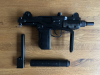 Die UZi befindet sich in einem einwandfreien Zustand mit leichten Gebrauchsspuren. Griff, Handschutz und Schalldämpferattrappe sind aus Kunststoff, der Lauf ist aus Metall.